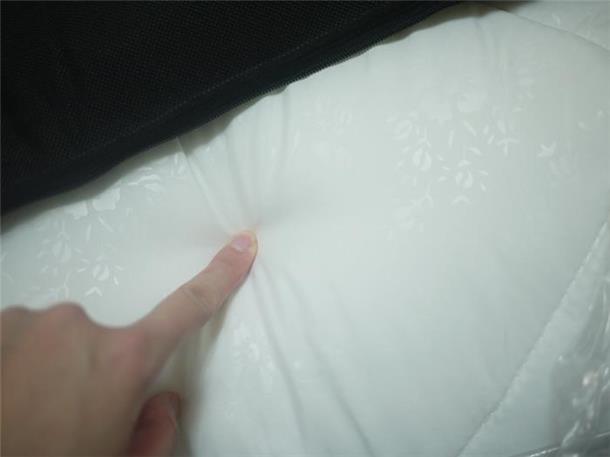 輕壓棉被,感覺的到紮實的100%聚酯纖維填充,表布聚酯纖維(發熱紗)製作觸感柔順、柔軟舒適。