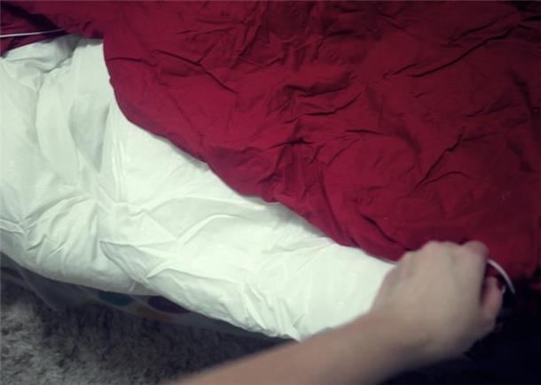 打開拉鍊,超澎的棉被立刻把棉被套撐開。